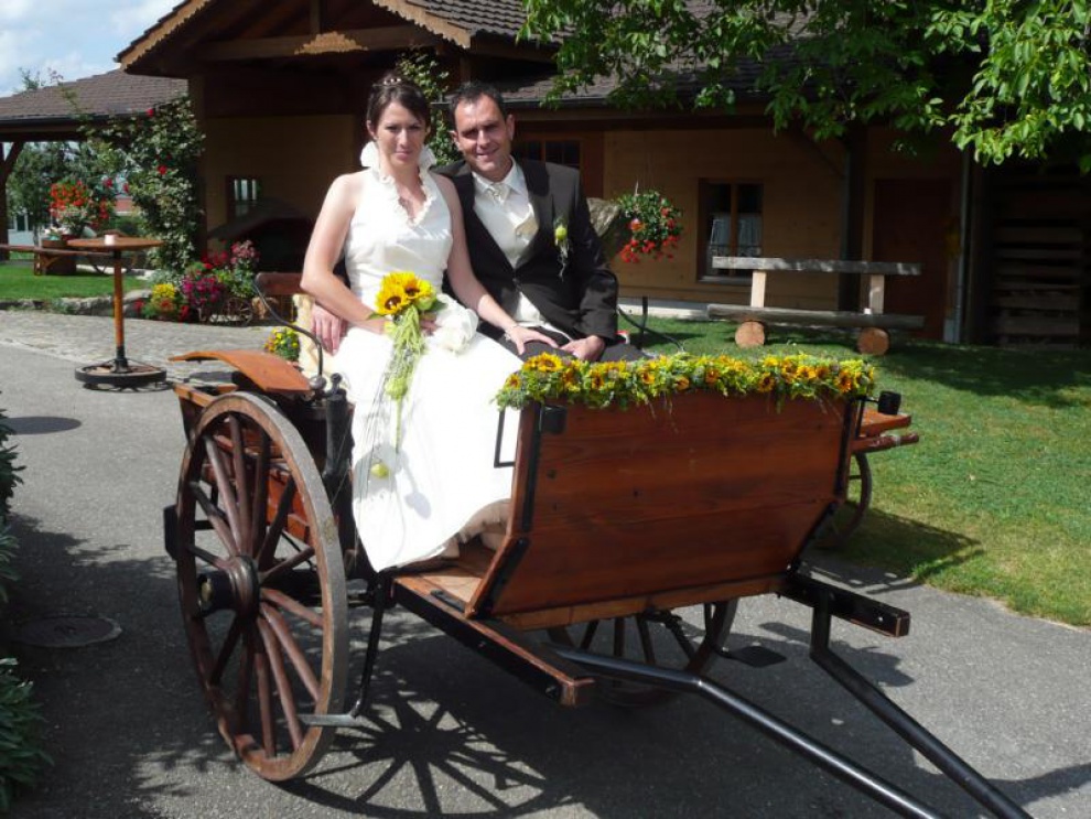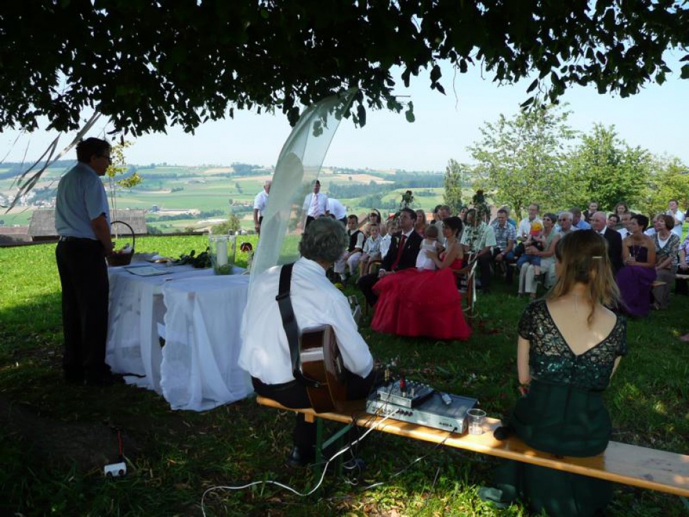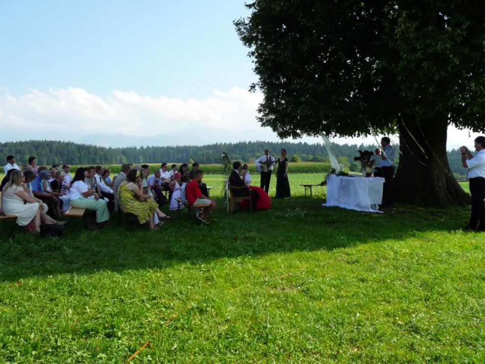 Auf unserem idyllischen Hügelzug mit herrlicher Fernsicht bieten sich mehrere Möglichkeiten Ihre Trauung in freier Natur abzuhalten, sei es auf der Wiese, unter dem Kirschbaum oder ganz nach Ihrem ausgesuchten Ort auf unserem Hof. Sehr gerne erfüllen wir Ihre Wünsche und organisieren Ihnen die Trauung.